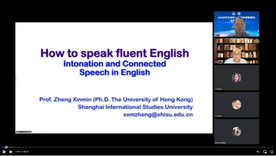 2022年11月29日晚上,郑新民教授受邀为金年会官网学生作题为“如何快速练就一口流利英语口语”讲座。为落实疫情防控要求,本次讲座采取线上的方式进行。讲座由金年会官网副院长饶卫忠老师主持。金年会官网英语和日语专业学生近300人线上参与本次讲座。