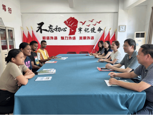 2023年9月18日,金年会jinnianhuicom在学院会议室召开留学生师生见面交流会。金年会官网池玫院长,林盛书记,范云霞副院长,饶卫忠副院长与留学生任课老师丁彧藻,周文蕴参加了交流会。