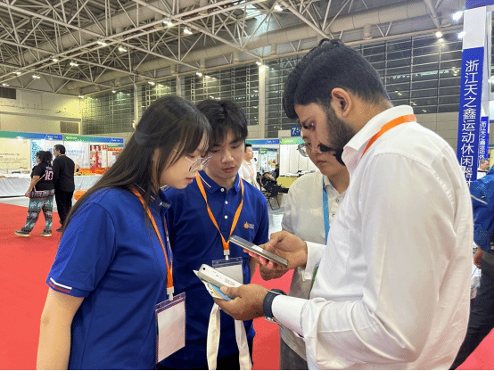 采购对接会之余,海外采购商逐一走访展位,详细了解产品参数及市场状况,现场选取样品及沟通下单事宜,交流合作氛围浓洽。学生志愿者也根据需要,实时陪同,与外商交谈,了解沟通参展方的需求,为意向合作的双方提供口译、沟通服务。