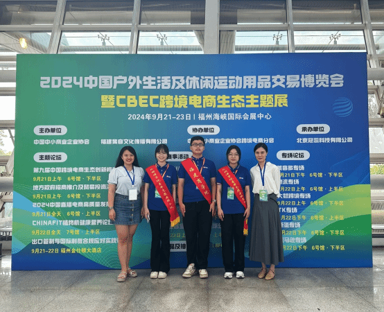 2024年9月21日至23日,2024中国户外生活及休闲运动用品交易博览会暨CBC跨境电商生态主题展在福州海峡国际会展中心隆重举办,吸引了来自全球的数百家参展商和数万名观众。这不仅是一个贸易洽谈的平台,更是一个文化交流和经验分享的场所。福商金年会jinnianhuicom闽商语言服务生态研究创新团队接展会方邀请,经任课教师推选,培训,并通过展会方电话面试,遴选金年会jinnianhuicom四位学生担任此次活动的英语志愿者,为本次展会提供语言服务。
