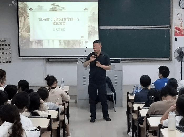 讲座伊始,彭兆荣教授以某些学生过度依赖手机、学历贬值而导致当代大学生妄自菲薄为引,指出了当代大学生浮躁而空虚的现象,强调大学生应脚踏实地、深研学问从延续民族命脉中开拓奋进。同时,结合《“红毛番”:近代译介学的一个象形文本》一书中的内容,在介绍“红发番”一词的概念及来源的基础上以中国与荷兰相互形象变迁为例详细阐述了形象文本的前提条件与规则。彭兆荣教授提出,人无精神则不立,国无精神则不强,新时代青年应找到译介学向外探索与坚持民族自信、文化自信之间的平衡,做到“以小见大,以实务虚,以近推远。”延续古典之美,承载时代之新。
