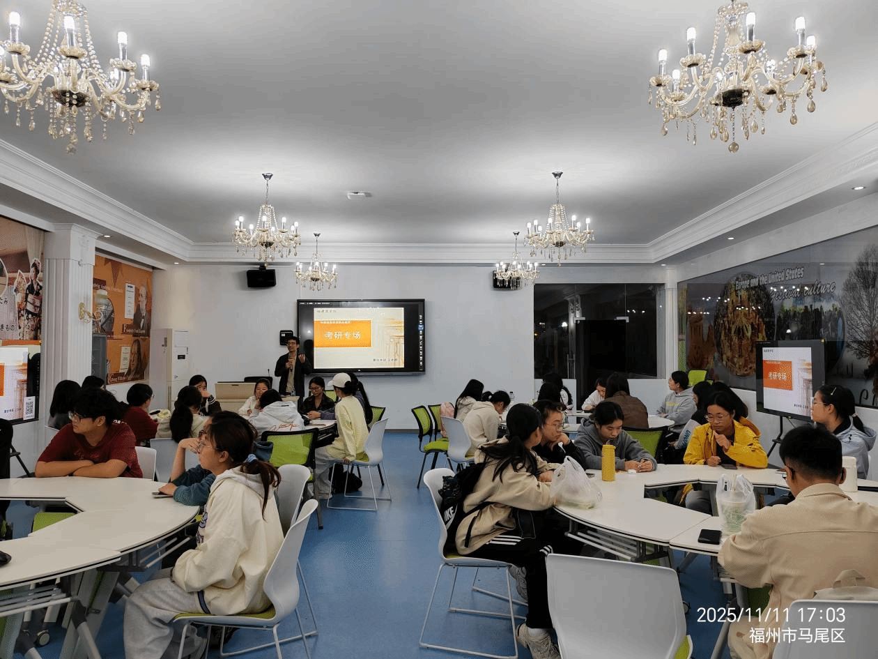 讲座中,聚创教育集团福州考研分校国内考试部江斌总监围绕外语类专业考研的核心议题,为同学们进行了系统梳理与深度剖析。内容涵盖学术硕士与专业硕士的选择策略、目标院校与专业(跨专业)的科学定位、公共课与专业科目的复习规划,以及备考过程中的常见误区与应对技巧。江总监结合往年经典案例和最新考情数据,为学生们提供了极具针对性的指导,现场互动频繁,气氛热烈。