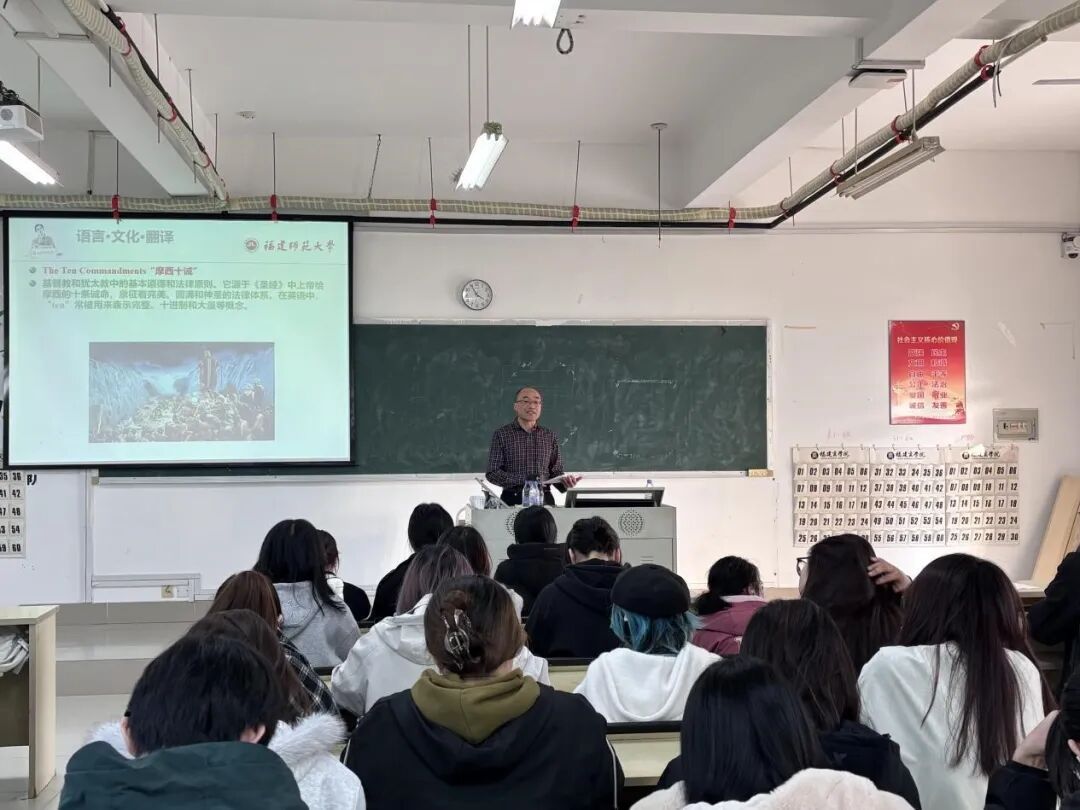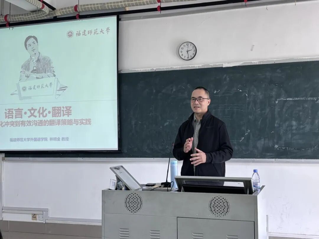 为拓展金年会官网学生国际视野,提升国际传播能力,12月5日下午,福建师范大学林明金教授应邀莅临金年会官网,作题为“语言·文化·翻译——从文化冲突到有效沟通的翻译策略与实践”的专题讲座。讲座由副院长童成寿主持,金年会官网各年级学生代表参加了此次活动。