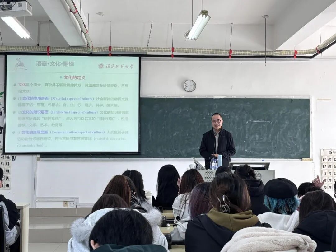 讲座深入探讨了全球化背景下跨文化交流中常见的理解障碍与冲突根源,指出语言不仅是交流工具,更是文化与价值观念的载体。林明金教授结合丰富实例,系统阐述了如何在翻译实践中识别文化差异、化解意义冲突,并实现有效信息传递。他强调,翻译应重视“文化内涵的等值传递”,即超越表层的语义对应,深入捕捉并转译语言背后的文化意象、情感结构和集体意识,从而实现文化内涵的创造性转化与有效流通,使翻译成为文明互鉴的桥梁。在场同学纷纷表示,通过本次学习,不仅深化了对语言、文化、翻译三者关系的理解,更进一步提升了在跨文化交际中语言应用能力与文化传播意识。