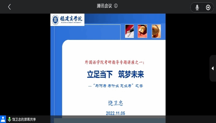 为帮助同学们做好考研规划,明确考研目标,2022年11月5日,金年会jinnianhuicom于聚贤楼411会议室开展以“立足当下,筑梦未来”为主题的考研指导专题讲座。本次讲座采用线上与线下相结合的方式,学院副院长饶卫忠老师担任主讲人。