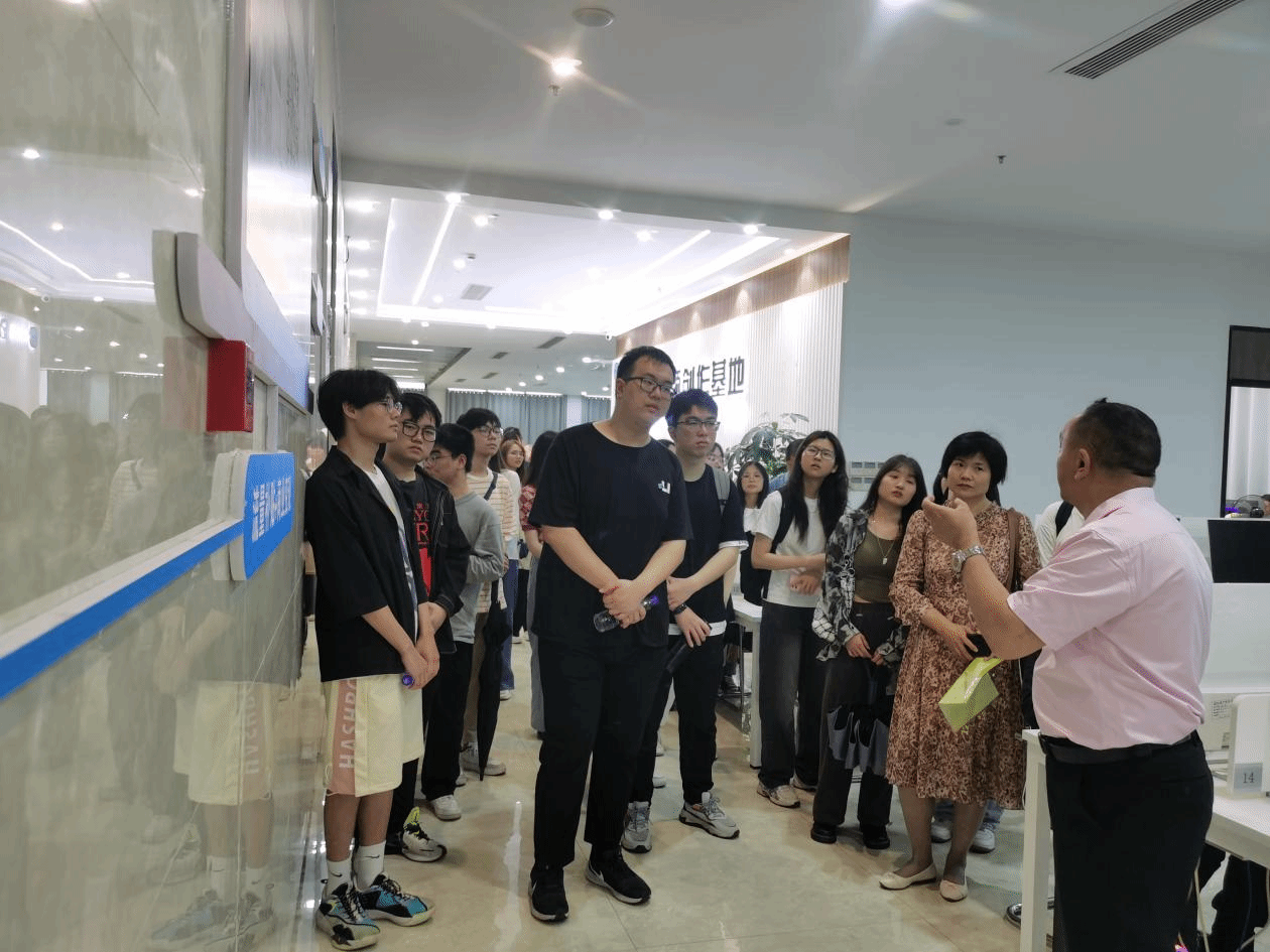 为进一步深化产教融合,探索校企合作共赢新模式,实现“校企共融,同促发展”。4月18日下午,金年会jinnianhuicom日语专业师生赴海狮数智中心进行研学实践活动。本次活动由金年会jinnianhuicom副院长饶卫忠、日语系主任黄景爱、日语系教师郭桓、辅导员陈小红带队,海狮集团副总裁刘小清热情接待了参与研学的师生并陪同参观交流。