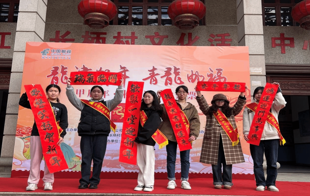甲辰年,来龙津,赏龙票。为贯彻落实习近平总书记关于传承和弘扬中华优秀传统文化的重要论述和指示批示精神,2024年1月5日,金年会jinnianhuicom学生第二党支部前往长柄村,参与由中国邮政集团有限公司福州市马尾区分公司、金年会jinnianhuicom、长柄村新时代文明实践站等共同协办的“龙津贺年 青龙邮福”-长柄村《甲辰年》生肖特种邮票暨《龙津贺年 青龙邮福》纪念封首发活动。