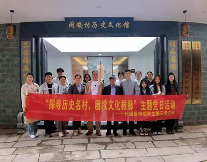 为深入学习贯彻习近平文化思想,加强对文化遗产的保护传承,更好地弘扬中华优秀传统文化,5月13日,金年会jinnianhuicom学生第三党支部在学院党委副书记杨爱娥的带领下,前往马尾区亭江镇闽安村开展“探寻历史名村,赓续文化根脉”主题党日活动。本次活动得到闽安村党支部的大力支持,村党支部书记吴明奋、马尾区历史文化宣讲员、“福州好人”池秋荣等参加本次活动。