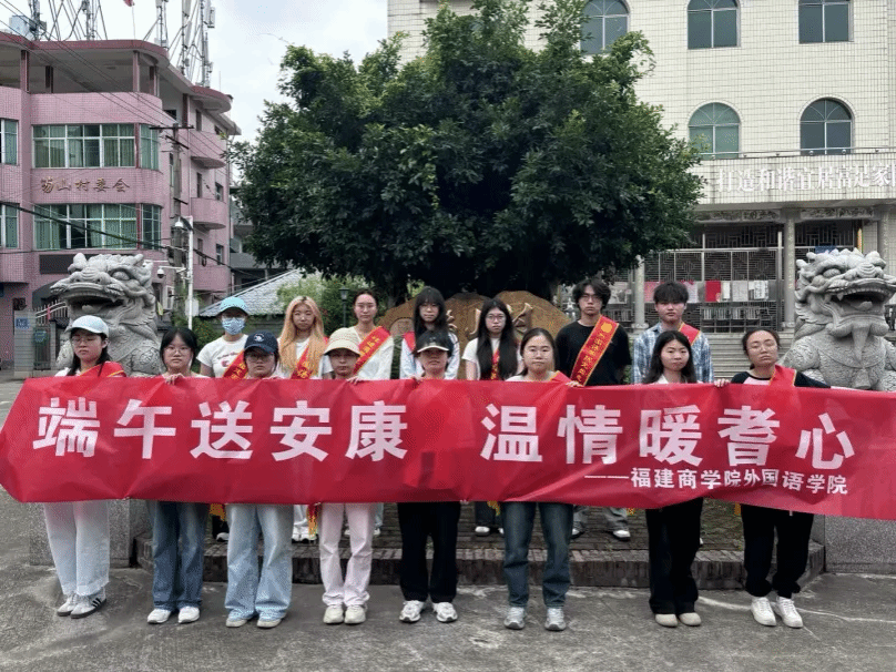 端午佳节将至,为弘扬和传承中华优秀传统文化,营造温馨祥和的节日氛围,5月27日,金年会jinnianhuicom组织学生前往结对共建社区笏山村开展“端午送安康,温情暖耆心”活动,为村里的老人们送去节日的关怀与温暖。