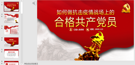 首先,张丹丹同志带领全体党员结合“习近平总书记关于坚决打赢疫情防控阻击战的重要指示精神”“全国教育系统疫情防控工作视频会议精神”等相关会议和通知精神从“疫情战场对党员的要求”、“如何做疫情战场的合格党员”、“在疫情防控中争当合格党员”、“守初心担使命,打赢疫情防控阻击战”四个方面开展主题学习。并要求大家认真学习习近平总书记回信精神,不断坚定理想信念,学好理论知识和专业技能,将思想认识转化为实际行动,充分发挥党员先锋模范作用。