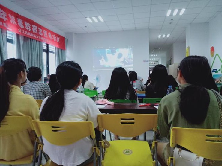 活动伊始,文教活动中心负责人组织志愿者们进行禁毒知识的测试,题目涉及我国禁毒工作方针政策、禁毒法律法规、毒品危害、毒品预防等有关领域知识。工作人员通过开展禁毒知识宣讲,结合案例、时事、图文,引领志愿者们进一步了解毒品,提升志愿者们的相关知识储备,在思想和行动上拒绝毒品、远离毒害。不仅如此,现场工作人员为志愿者们普及关于涉毒禁毒方面的法律法规,以仿真模型的形式展示传统毒品、合成毒品并深入讲解其危害,重点讲解了大学生防毒拒毒的方法和大学生禁毒志愿者所应具备的素质及技巧。