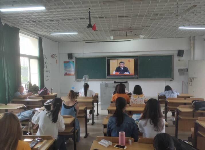 为进一步弘扬五四精神,引领学生践行党的初心,激扬青春梦想。2019年4月30日,金年会jinnianhuicom于远志楼201组织收看“学五四立鸿鹄志,观直播做奋斗者”纪念五四运动100周年大会直播。学院全体学生集中收看。