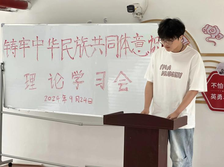 学习会上,同学们共同学习了习近平总书记关于加强和改进民族工作的重要论述,从深刻领悟铸牢中华民族共同体意识的重大意义及其基本内涵出发,充分认识新中国成立以后特别是新时代以来民族工作的重大成就,并结合学院具体实际情况和各自工作,围绕铸牢中华民族共同体意识推进工作高质量发展开展了深度研讨。陈啸林同学表示,民族团结是国家稳定的基石,只有各民族团结一心,相互尊重、相互支持,国家才能长治久安。同时,他呼吁同学们要以民族团结进步月为契机,积极参与铸牢中华民族共同体意识教育实践活动,以实际行动践行民族团结,做民族团结的倡导者和推动者,让民族团结之花绽放得更加绚烂。