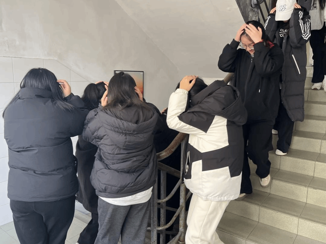 随着急促的警报声响起,演练正式开始。同学们迅速反应,用书本或枕头护住头部,弯腰低姿,躲在桌下或墙角等安全地带。随后在老师以及工作人员的指挥下,遵循“分区域、靠右侧、不推搡”的原则,按照预定的疏散路线,快速有序地撤离宿舍,前往安全地带集合。整个撤离过程紧张又有序,同学们均在规定时间内安全撤离到了指定地点,充分展现了同学们良好的应急素养。